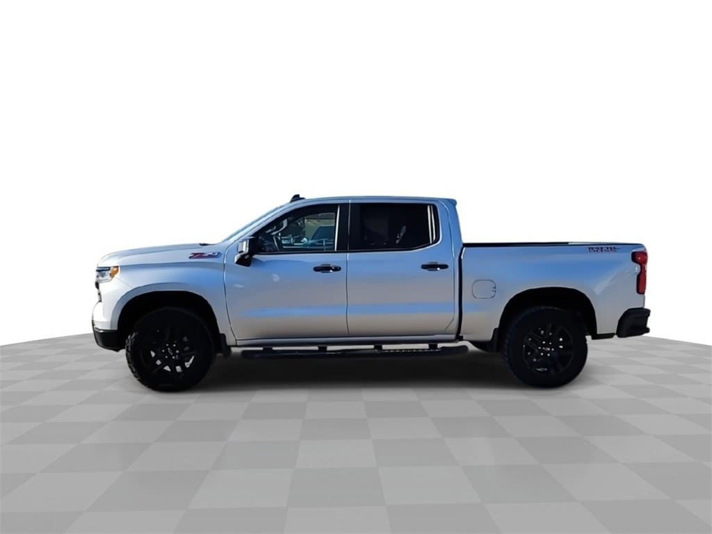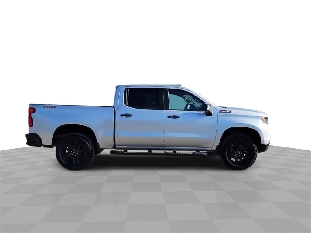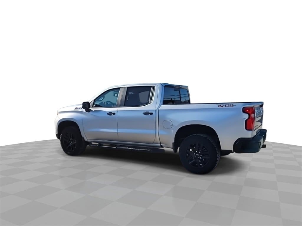 This 2022 Chevrolet Silverado 1500 LT Trail Boss in Silver Ice Metallic comes with the following features: 3.0L I6 10-Speed Automatic 4WD 10-Speed Automatic, 4WD, and Gideon/Very Dark Atmosphere Leather Convenience Package (10-Way Power Driver Seat w/Lumbar, 120-Volt Bed Mounted Power Outlet, 120-Volt Instrument Panel Power Outlet, Dual Rear USB Ports (Charge Only), Dual-Zone Automatic Climate Control, Electric Rear-Window Defogger, Heated Driver & Front Outboard Passenger Seats, Heated Steering Wheel, Keyless Open & Start, Leather Wrapped Steering Wheel, Manual Tilt/Telescoping Steering Column, Remote Vehicle Starter System, and Theft Deterrent System (Unauthorized Entry)), Convenience Package II (Hitch Guidance w/Hitch View, Integrated Trailer Brake Controller, Power Sliding Rear Window w/Rear Defogger, Premium Bose 7-Speaker Sound System, Trailering App, and Universal Home Remote), Leather Package (Leather-Appointed Front Seat Trim), Preferred Equipment Group 2LT (12.3 Multicolor Reconfigurable Digital Display, 6-Speaker Audio System, All-Weather Floor Liner (LPO) (AAK), Auto-Locking Rear Differential, Bluetooth® For Phone, Chevrolet Connected Access Capable, Color-Keyed Carpeting Floor Covering, Compass, Deep-Tinted Glass, Electrical Steering Column Lock, Electronic Cruise Control, EZ Lift Power Lock & Release Tailgate, Front LED Fog Lamps, HD Rear Vision Camera, Heated Power-Adjustable Outside Mirrors, High Gloss Black Mirror Caps, Inside Rear-View Mirror w/Tilt, LED Cargo Area Lighting, OnStar & Chevrolet Connected Services Capable, Performance Red Recovery Hooks, Power Front Windows w/Driver Express Up/Down, Power Front Windows w/Passenger Express Down, Power Rear Windows w/Express Down, Rear 60/40 Folding Bench Seat (Folds Up), SiriusXM w/360L, Standard Tailgate, Steering Wheel Audio Controls, Wi-Fi Hot Spot Capable, and Wireless Phone Projection), Protection Package (Chevytec Spray-On Black Bedliner and Rear Wheelhouse Liners), Safety Package (HD Surround Vision, Perimeter Lighting, Rear Cross Traffic Alert-Braking, Rear Park Assist, Rear Pedestrian Detection, Trailer Camera Provisions, and Trailer Side Blind Zone Alert), Suspension Package (Heavy-Duty Air Filter and Hill Descent Control), Trailering Package (Hitch Guidance), Up-Level Rear Seat w/Storage Package, 10-Speed Automatic, 4WD, Gideon/Very Dark Atmosphere Leather, 2 USB Data Ports, 220 Amp Alternator, 4-Wheel Disc Brakes, 4 Black Round Assist Steps (LPO), 40/20/40 Front Split-Bench Seat, 6 Speakers, ABS brakes, Air Conditioning, Alloy wheels, AM/FM radio: SiriusXM with 360L, Apple CarPlay/Android Auto, Auto High-beam Headlights, Automatic Emergency Braking, Automatic temperature control, Brake assist, Cloth Seat Trim, Delay-off headlights, Driver door bin, Driver vanity mirror, Dual Exhaust w/Polished Outlets, Dual front impact airbags, Dual front side impact airbags, Electronic Stability Control, Electronic Transmission Range Selector Shifter, Engine Block Heater, Floor Mounted Center Console, Following Distance Indicator, Forward Collision Alert, Front anti-roll bar, Front Bucket Seats, Front Center Armrest w/Storage, Front dual zone A/C, Front fog lights, Front License Plate Kit, Front Pedestrian Braking, Front reading lights, Front wheel independent suspension, Fully automatic headlights, Heated door mirrors, Heated front seats, Heated steering wheel, Illuminated entry, IntelliBeam Automatic High Beam On/Off, Lane Keep Assist w/Lane Departure Warning, Low tire pressure warning, Not Equipped w/Rear Park Assist, Not Equipped w/Steering Column Lock, Occupant sensing airbag, Outside temperature display, Overhead airbag, Overhead console, Panic alarm, Passenger door bin, Passenger vanity mirror, Power door mirrors, Power driver seat, Power steering, Power windows, Premium audio system: Chevrolet Infotainment 3 Premium, Radio data system, Radio: Chevrolet Infotainment 3 Premium System, Rear reading lights, Rear
