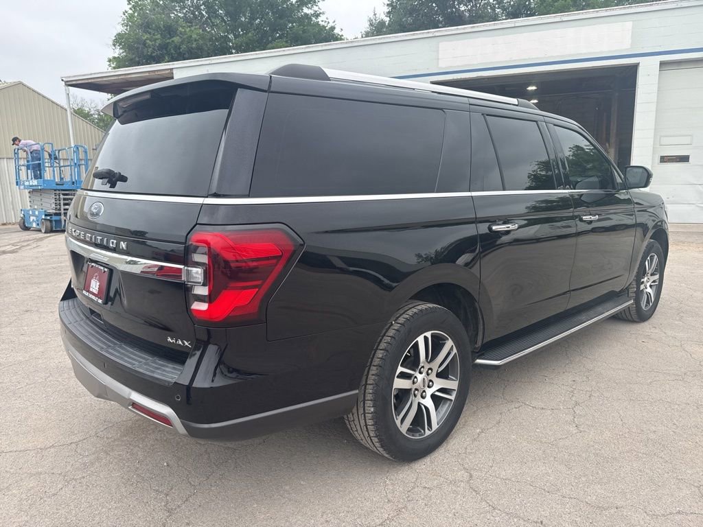 This 2022 Ford Expedition Max Limited in Black Metallic comes with the following features: EcoBoost 3.5L V6 GTDi DOHC 24V Twin Turbocharged 10-Speed Automatic RWD Equipment Group 301A Mid Package, 12 Speakers, 2nd Row Power-Folding 40/20/40 Leather Bench Seat, 3.31 Axle Ratio, 3rd row seats: split-bench, 4-Wheel Disc Brakes, ABS brakes, Active Park Assist 2.0, Adjustable pedals, Air Conditioning, Alloy wheels, AM/FM radio: SiriusXM with 360L, Auto High-beam Headlights, Auto Start-Stop Removal, Auto-dimming door mirrors, Auto-dimming Rear-View mirror, Automatic temperature control, Brake assist, Bumpers: body-color, Compass, Delay-off headlights, Driver door bin, Driver vanity mirror, Dual front impact airbags, Dual front side impact airbags, Electronic Stability Control, Emergency communication system: SYNC 4 911 Assist, Exterior Parking Camera Rear, Four wheel independent suspension, Front anti-roll bar, Front Bucket Seats, Front Center Armrest, Front dual zone A/C, Front fog lights, Front License Plate Bracket, Front reading lights, Fully automatic headlights, Garage door transmitter, Heated & Ventilated Leather Front Captain's Chairs, Heated door mirrors, Heated front seats, Heated rear seats, Heated steering wheel, Illuminated entry, Leather steering wheel, Low tire pressure warning, Memory seat, Navigation system: Connected Navigation, Occupant sensing airbag, Outside temperature display, Overhead airbag, Overhead console, Panic alarm, Passenger door bin, Passenger vanity mirror, Pedal memory, Power door mirrors, Power driver seat, Power Liftgate, Power moonroof, Power passenger seat, Power steering, Power windows, Radio data system, Radio: B&O Sound System by Bang & Olufsen, Rain sensing wipers, Rear air conditioning, Rear anti-roll bar, Rear reading lights, Rear window defroster, Rear window wiper, Reclining 3rd row seat, Remote keyless entry, Security system, SiriusXM w/360L, Speed control, Speed-sensing steering, Speed-Sensitive Wipers, Split folding rear seat, Spoiler, Steering wheel memory, Steering wheel mounted audio controls, SYNC 4 w/Enhanced Voice Recognition, Tachometer, Telescoping steering wheel, Tilt steering wheel, Traction control, Trip computer, Turn signal indicator mirrors, Variably intermittent wipers, Ventilated front seats, Voltmeter, and Wheels: 20 Bright Machined Aluminum.