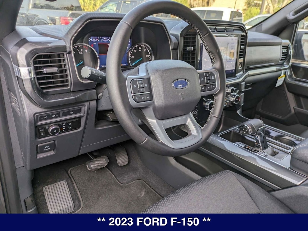 F-150 XLT, Carbonized Gray Metallic, Black Cloth, 10-Way Power Driver & Passenger Seats, 2-Bar Style Grille w/Chrome 2 Minor Bars, 360 Degree Camera, 8" Productivity Screen in Instrument Cluster, Accent-Color Step Bars, Auto High-beam Headlights, Auto Start-Stop Removal (DISC), Auto-Dimming Rear-View Mirror, Black 2-Bar Style Grille w/Black Surround/Accents, Body-Color Door & Tailgate Handles, Body-Color Front & Rear Bumpers, Box Side Decals, Brake assist, Bright Polished Step Bars, Center High-Mounted Stop Lamp CHMSL Camera Removal, Chrome Door & Tailgate Handles w/Body-Color Bezel, Chrome Single-Tip Exhaust, Class IV Trailer Hitch Receiver, Delay-off headlights, Dual Zone Electronic Automatic Temperature Control, Electronic Stability Control, Equipment Group 302A High, Exterior Parking Camera Rear, Fully automatic headlights, Heated Front Seats, Integrated Trailer Brake Controller, Intelligent Access w/Push Button Start, LED Reflector Headlamps, LED Sideview Mirror Spotlights, Onboard 400W Outlet, Outside temperature display, Overhead console, Panic alarm, Passenger vanity mirror, Power Glass Heated Sideview Mirrors, Power steering, Power windows, Pro Trailer Backup Assist & Pro Trailer Hitch Assist, Radio data system, Radio: AM/FM SiriusXM w/360L, Rear Under-Seat Storage, Remote keyless entry, Remote Start System w/Remote Tailgate Release, SecuriCode Drivers Side Keyless-Entry Keypad, Security system, Steering wheel mounted audio controls, SYNC 4 w/Enhanced Voice Recognition, Trailer Tow Package, Unique Sport Cloth 40/Console/40 Front-Seats, Wheels: 18" 6-Spoke Machined Aluminum, Wheels: 18" Chrome-Like PVD, Wrapped Steering Wheel, XLT Chrome Appearance Package, XLT Sport Appearance Package, Zone Lighting.
