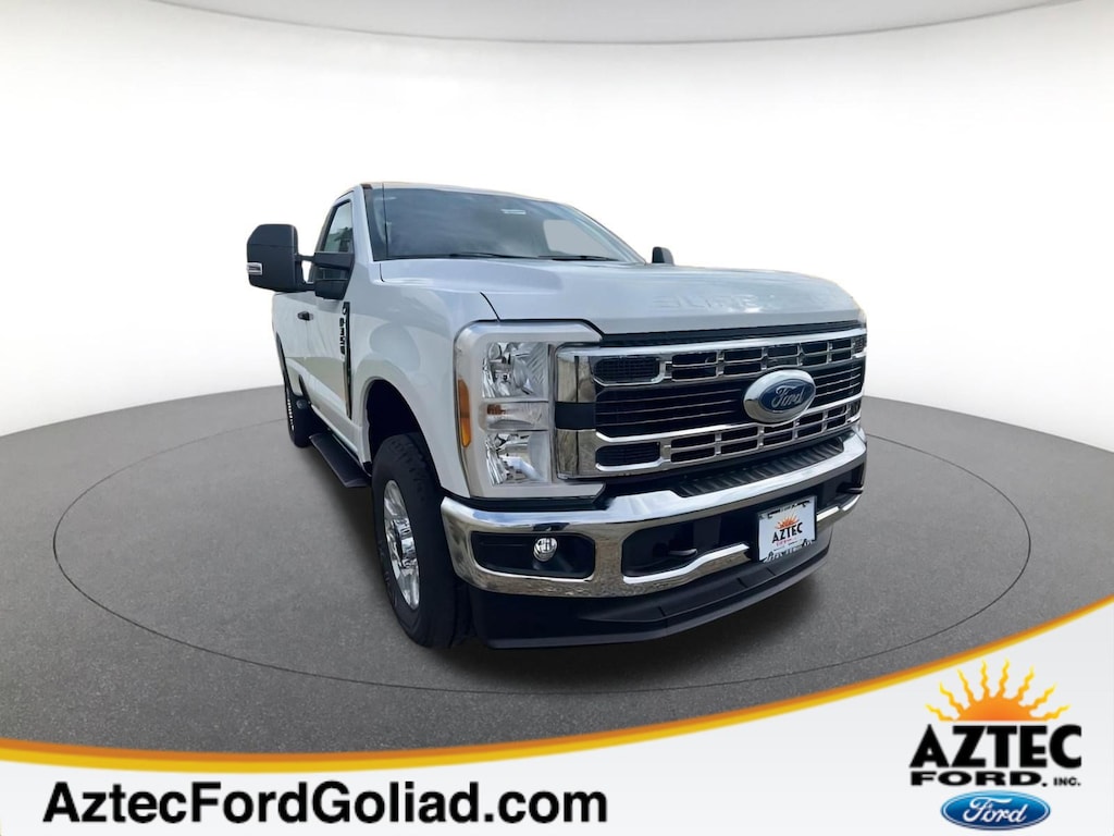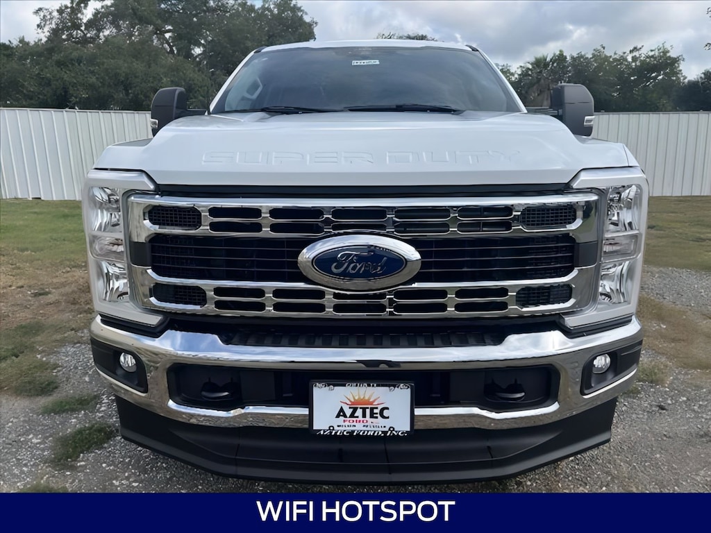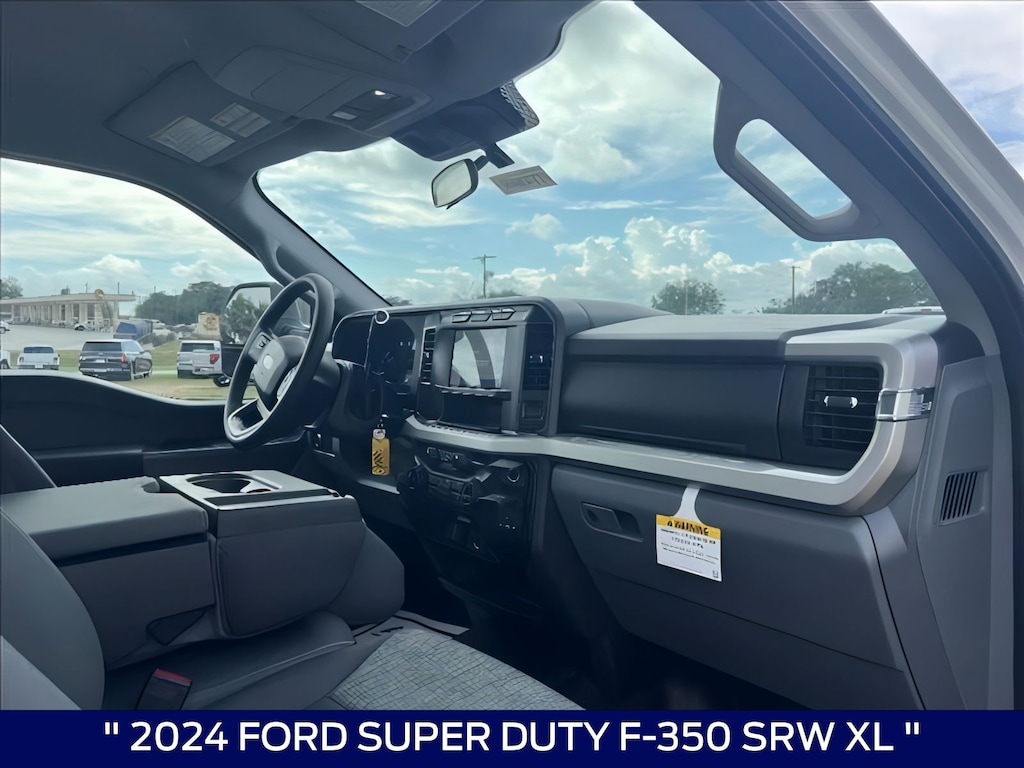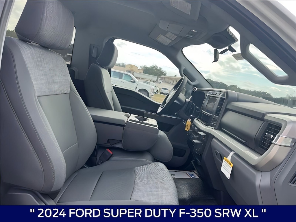 This 2024 Ford F-350SD XLT in Oxford White comes with the following features: 6.8L V8 10-Speed Automatic 4WD GVWR: 10,900 lb Payload Package, Order Code 613A, Oxford White, Medium Dark Slate w/Cloth 40/20/40 Split Bench Seat, 4 Speakers, ABS brakes, Air Conditioning, Alloy wheels, AM/FM radio, AM/FM Stereo w/MP3 Player, Auto High-beam Headlights, Brake assist, Compass, Delay-off headlights, Electronic Stability Control, Electronic-Locking w/3.73 Axle Ratio, Exterior Parking Camera Rear, Front fog lights, Fully automatic headlights, Heated door mirrors, Illuminated entry, Low tire pressure warning, Power driver seat, Power steering, Power windows, Remote keyless entry, SYNC 4, Telescoping steering wheel, Tilt steering wheel, and Traction control GVWR: 10,900 lb Payload Package, Order Code 613A, Oxford White, Medium Dark Slate w/Cloth 40/20/40 Split Bench Seat, 4 Speakers, ABS brakes, Air Conditioning, Alloy wheels, AM/FM radio, AM/FM Stereo w/MP3 Player, Auto High-beam Headlights, Brake assist, Compass, Delay-off headlights, Electronic Stability Control, Electronic-Locking w/3.73 Axle Ratio, Exterior Parking Camera Rear, Front fog lights, Fully automatic headlights, Heated door mirrors, Illuminated entry, Low tire pressure warning, Power driver seat, Power steering, Power windows, Remote keyless entry, SYNC 4, Telescoping steering wheel, Tilt steering wheel, Traction control, 190 Amp Alternator, 4-Wheel Disc Brakes, Bumpers: chrome, Cloth 40/20/40 Split Bench Seat, Driver door bin, Driver vanity mirror, Dual front impact airbags, Dual front side impact airbags, Emergency communication system: SYNC 4 911 Assist, Front anti-roll bar, Front Center Armrest w/Storage, Front reading lights, Outside temperature display, Overhead airbag, Overhead console, Panic alarm, Passenger cancellable airbag, Passenger door bin, Passenger vanity mirror, Power door mirrors, Rear step bumper, Speed control, Steering wheel mounted audio controls, Tachometer, Trip computer, Turn signal indicator mirrors, Variably intermittent wipers, and Wheels: 18" Sparkle Silver Painted Cast Aluminum.