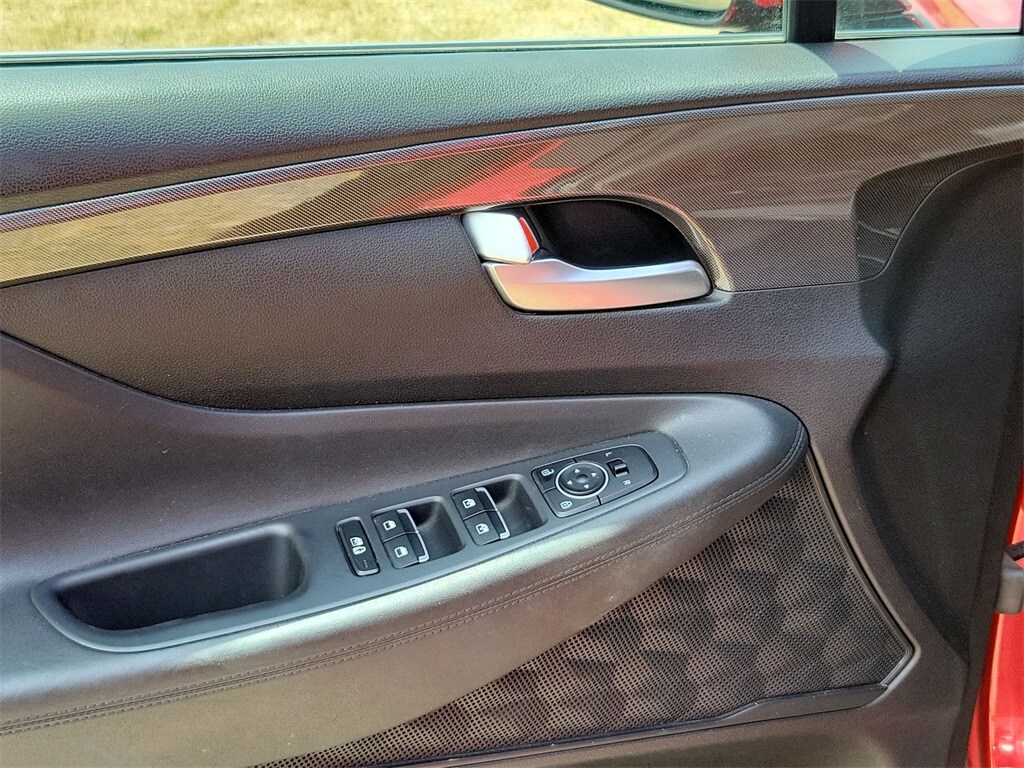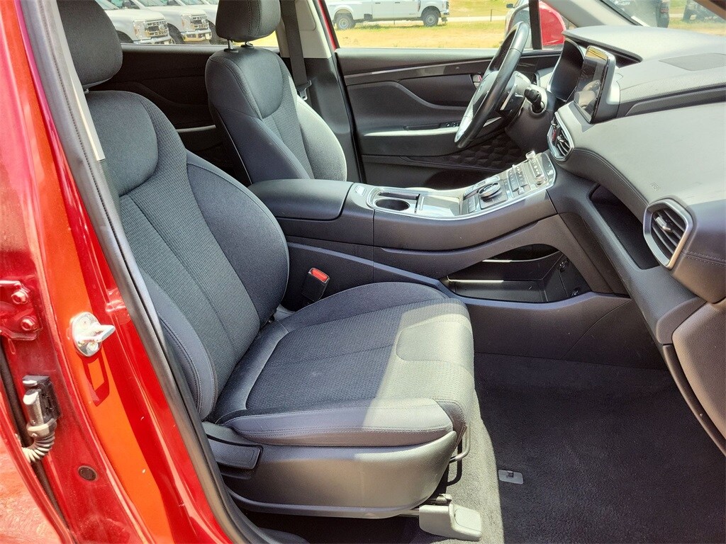 This 2023 Hyundai Santa Fe SEL in Calypso Red comes with the following features: 2.5L I4 8-Speed Automatic with SHIFTRONIC AWD AWD and Black Cloth Option Group 01, AWD, Black Cloth, 18" x 7.5J Alloy Wheels, 4-Wheel Disc Brakes, 6 Speakers, ABS brakes, Air Conditioning, Alloy wheels, AM/FM radio: SiriusXM, Apple CarPlay & Android Auto, Auto High-beam Headlights, Automatic temperature control, Axle Ratio: 4.081, Brake assist, Bumpers: body-color, Delay-off headlights, Driver door bin, Driver vanity mirror, Dual front impact airbags, Dual front side impact airbags, Electronic Stability Control, Emergency communication system, Exterior Parking Camera Rear, Four wheel independent suspension, Front anti-roll bar, Front Bucket Seats, Front Center Armrest, Front dual zone A/C, Front reading lights, Fully automatic headlights, Heated door mirrors, Heated Front Bucket Seats, Heated front seats, Illuminated entry, Leather steering wheel, Low tire pressure warning, Navigation System, Occupant sensing airbag, Outside temperature display, Overhead airbag, Overhead console, Panic alarm, Passenger door bin, Passenger vanity mirror, Power door mirrors, Power driver seat, Power Liftgate, Power steering, Power windows, Radio: AM/FM Display Audio, Rear anti-roll bar, Rear seat center armrest, Rear window defroster, Rear window wiper, Remote keyless entry, Security system, Speed control, Speed-sensing steering, Split folding rear seat, Spoiler, Stain-Resistant Cloth Seat Trim, Steering wheel mounted audio controls, Tachometer, Telescoping steering wheel, Tilt steering wheel, Traction control, Trip computer, Turn signal indicator mirrors, and Variably intermittent wipers.
