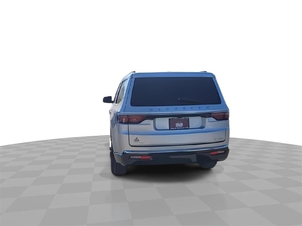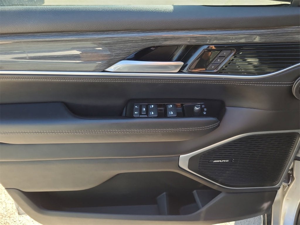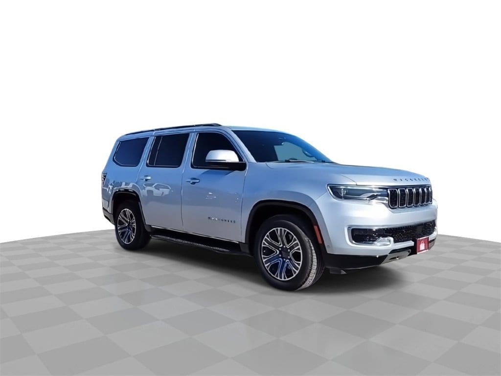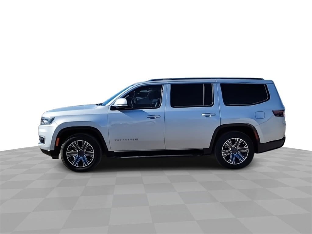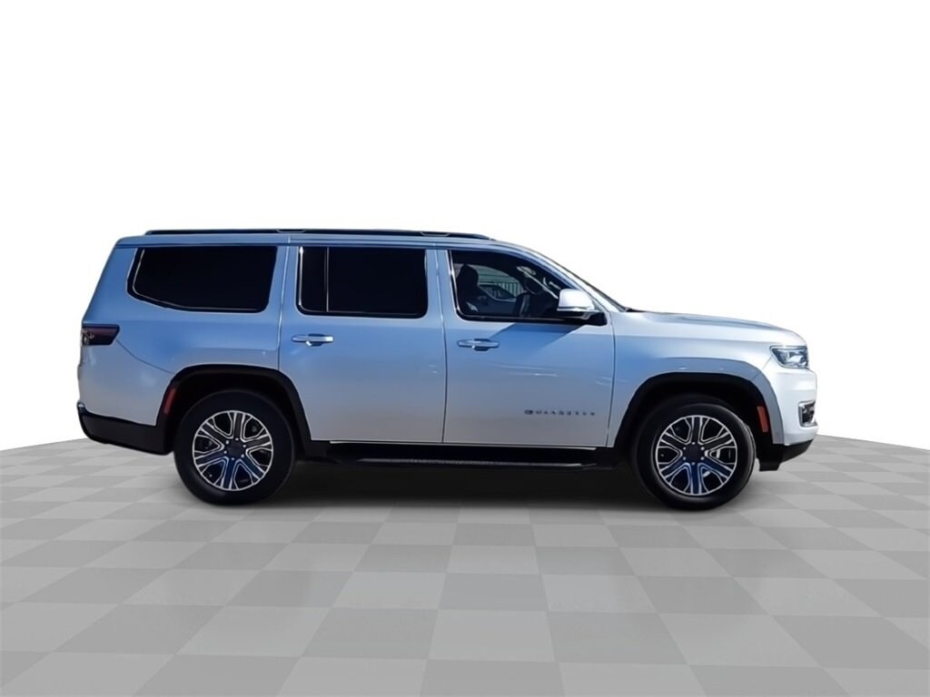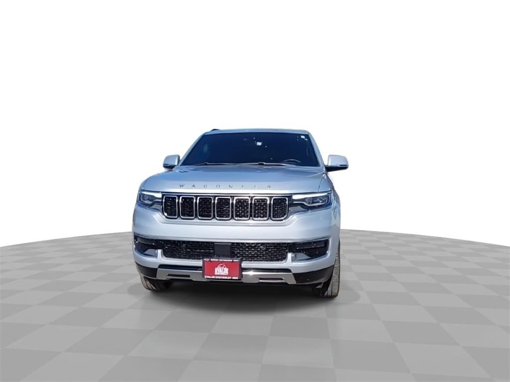 This 2022 Jeep Wagoneer Series III in Silver Zynith comes with the following features: 5.7L V8 8-Speed Automatic 4WD Flexible Seating Group (7-Passenger Seating, Floor Console w/Cupholder, and Power Tip/Slide Recline 2nd Row Buckets), Quick Order Package 22N, 10 Speakers, 3.21 Rear Axle Ratio, 3rd row seats: bench, 4-Wheel Disc Brakes, ABS brakes, Adjustable pedals, Air Conditioning, Alloy wheels, AM/FM radio: SiriusXM with 360L, Anti-whiplash front head restraints, Audio memory, Auto High-beam Headlights, Auto-dimming door mirrors, Auto-dimming Rear-View mirror, Auto-leveling suspension, Automatic temperature control, Brake assist, Bumpers: body-color, Compass, Delay-off headlights, Driver door bin, Driver vanity mirror, Driver's Seat Mounted Armrest, Dual front impact airbags, Dual front side impact airbags, Electronic Stability Control, Exterior Parking Camera Rear, Four wheel independent suspension, Front anti-roll bar, Front Bucket Seats, Front Center Armrest w/Storage, Front dual zone A/C, Front fog lights, Front Passenger Interactive Display, Front reading lights, Fully automatic headlights, Garage door transmitter, Genuine wood console insert, Genuine wood dashboard insert, Genuine wood door panel insert, Heads-Up Display, Heated door mirrors, Heated front seats, Heated rear seats, Heated steering wheel, Illuminated entry, Knee airbag, Leather Trimmed Bucket Seats, Low tire pressure warning, Memory seat, Navigation System, Normal Duty Suspension, Occupant sensing airbag, Outside temperature display, Overhead airbag, Overhead console, Panic alarm, Passenger door bin, Passenger seat mounted armrest, Passenger vanity mirror, Pedal memory, Power adjustable front head restraints, Power door mirrors, Power driver seat, Power Liftgate, Power passenger seat, Power steering, Power windows, Radio data system, Radio: Uconnect 5 Nav w/10.1 Display, Rain sensing wipers, Rear air conditioning, Rear anti-roll bar, Rear dual zone A/C, Rear reading lights, Rear seat center armrest, Rear window defroster, Rear window wiper, Reclining 3rd row seat, Remote keyless entry, Security system, Speed control, Speed-sensing steering, Speed-Sensitive Wipers, Split folding rear seat, Steering wheel memory, Steering wheel mounted audio controls, Tachometer, Telescoping steering wheel, Tilt steering wheel, Traction control, Trip computer, Turn signal indicator mirrors, Variably intermittent wipers, Ventilated front seats, Voltmeter, and Wheels: 20 x 9.0 Premium 2 Aluminum.