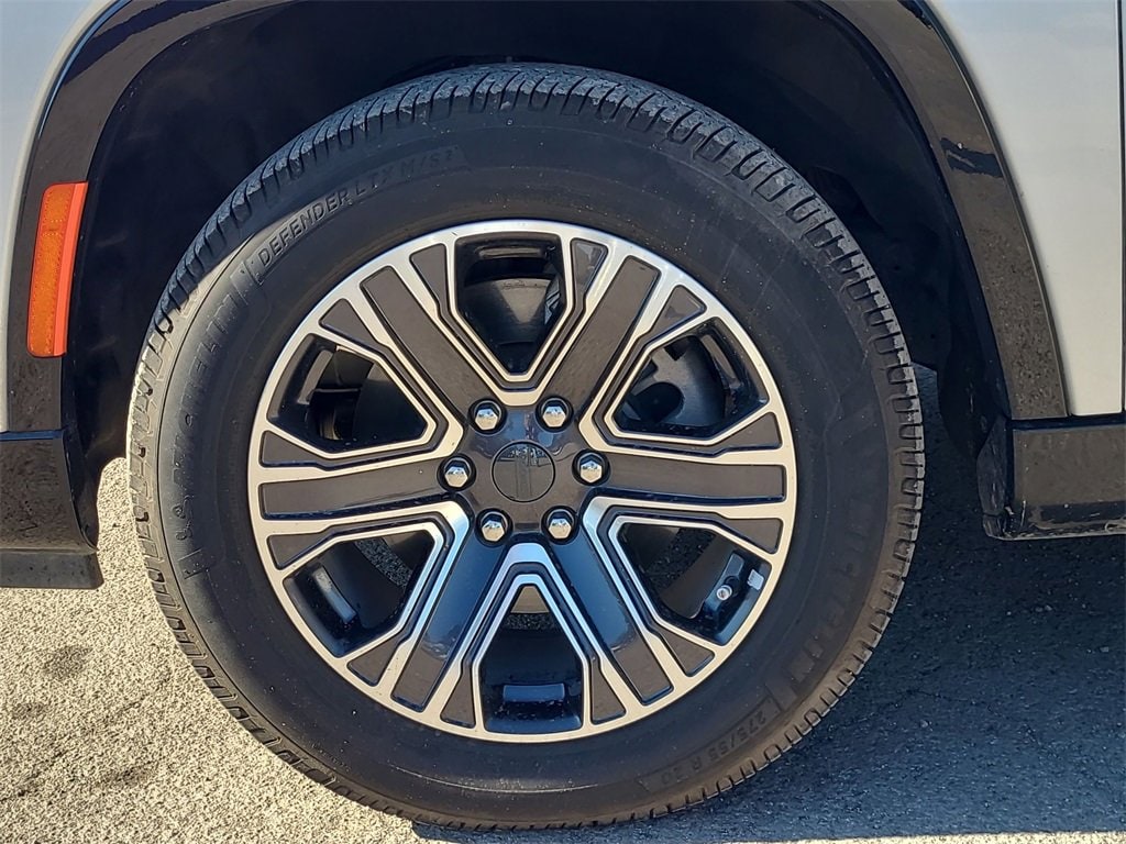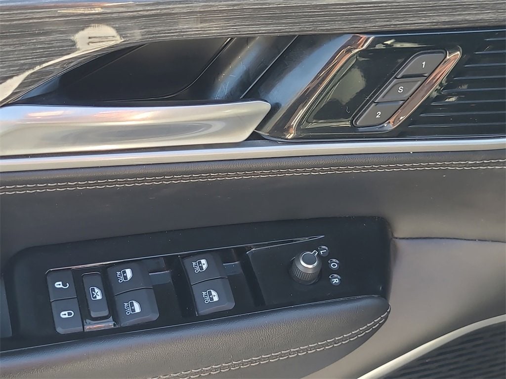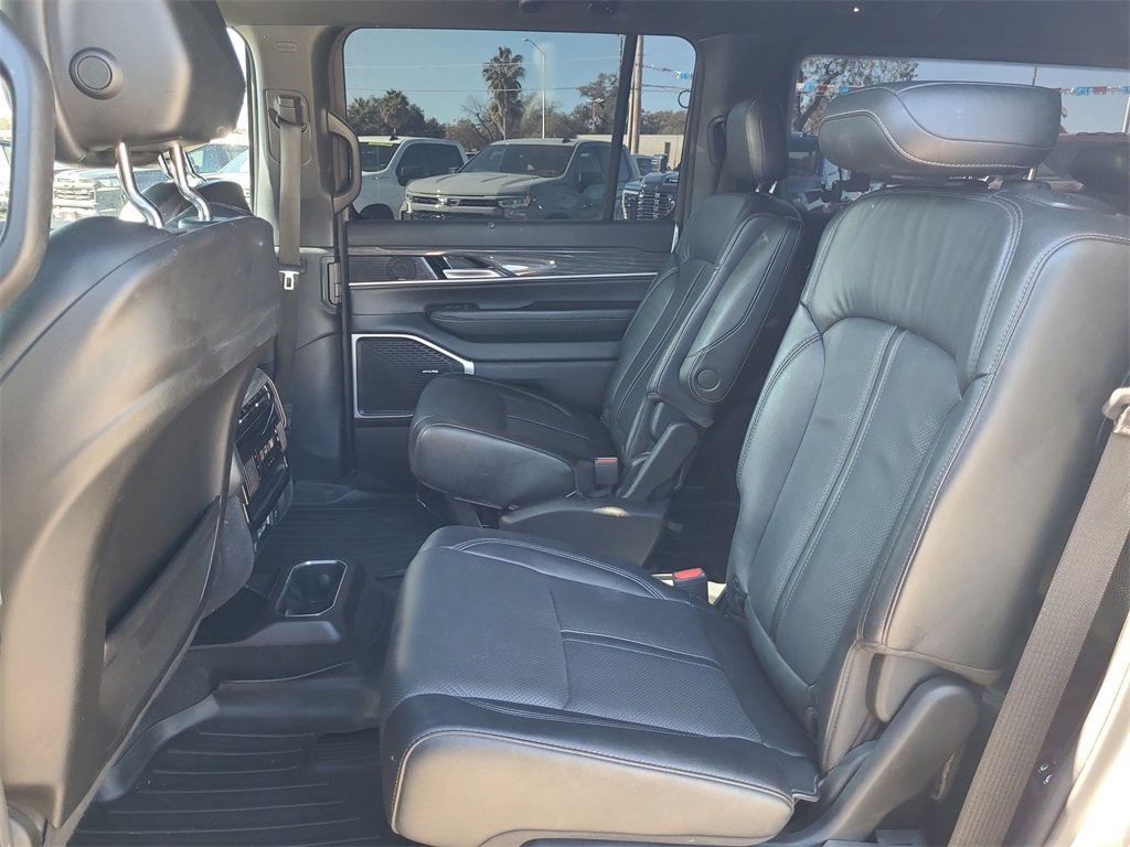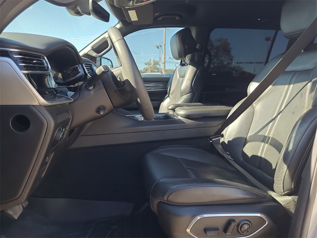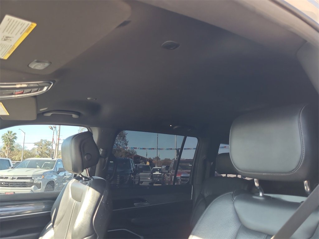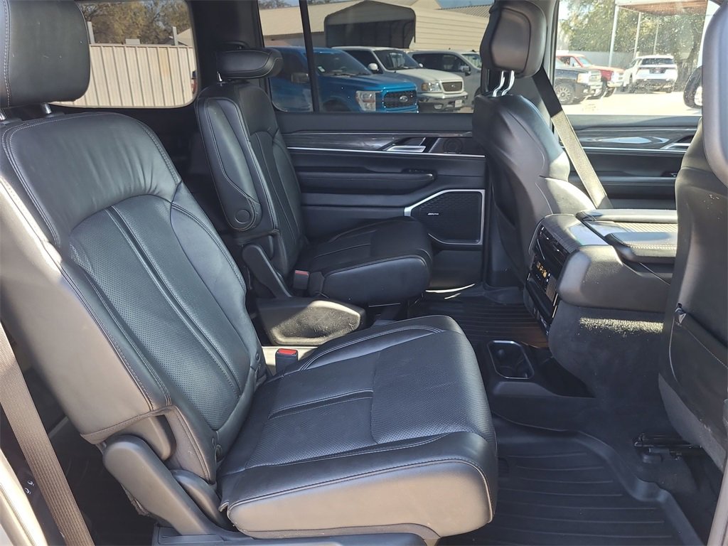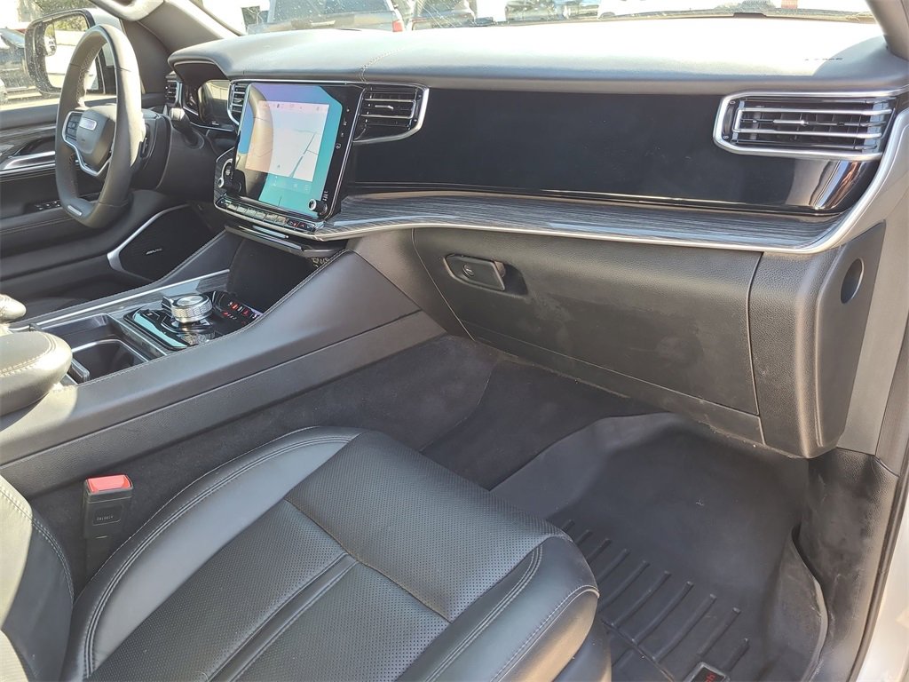 This 2022 Jeep Wagoneer Series III in Silver Zynith comes with the following features: 5.7L V8 8-Speed Automatic 4WD Flexible Seating Group (7-Passenger Seating, Floor Console w/Cupholder, and Power Tip/Slide Recline 2nd Row Buckets), Quick Order Package 22N, 10 Speakers, 3.21 Rear Axle Ratio, 3rd row seats: bench, 4-Wheel Disc Brakes, ABS brakes, Adjustable pedals, Air Conditioning, Alloy wheels, AM/FM radio: SiriusXM with 360L, Anti-whiplash front head restraints, Audio memory, Auto High-beam Headlights, Auto-dimming door mirrors, Auto-dimming Rear-View mirror, Auto-leveling suspension, Automatic temperature control, Brake assist, Bumpers: body-color, Compass, Delay-off headlights, Driver door bin, Driver vanity mirror, Driver's Seat Mounted Armrest, Dual front impact airbags, Dual front side impact airbags, Electronic Stability Control, Exterior Parking Camera Rear, Four wheel independent suspension, Front anti-roll bar, Front Bucket Seats, Front Center Armrest w/Storage, Front dual zone A/C, Front fog lights, Front Passenger Interactive Display, Front reading lights, Fully automatic headlights, Garage door transmitter, Genuine wood console insert, Genuine wood dashboard insert, Genuine wood door panel insert, Heads-Up Display, Heated door mirrors, Heated front seats, Heated rear seats, Heated steering wheel, Illuminated entry, Knee airbag, Leather Trimmed Bucket Seats, Low tire pressure warning, Memory seat, Navigation System, Normal Duty Suspension, Occupant sensing airbag, Outside temperature display, Overhead airbag, Overhead console, Panic alarm, Passenger door bin, Passenger seat mounted armrest, Passenger vanity mirror, Pedal memory, Power adjustable front head restraints, Power door mirrors, Power driver seat, Power Liftgate, Power passenger seat, Power steering, Power windows, Radio data system, Radio: Uconnect 5 Nav w/10.1 Display, Rain sensing wipers, Rear air conditioning, Rear anti-roll bar, Rear dual zone A/C, Rear reading lights, Rear seat center armrest, Rear window defroster, Rear window wiper, Reclining 3rd row seat, Remote keyless entry, Security system, Speed control, Speed-sensing steering, Speed-Sensitive Wipers, Split folding rear seat, Steering wheel memory, Steering wheel mounted audio controls, Tachometer, Telescoping steering wheel, Tilt steering wheel, Traction control, Trip computer, Turn signal indicator mirrors, Variably intermittent wipers, Ventilated front seats, Voltmeter, and Wheels: 20 x 9.0 Premium 2 Aluminum.