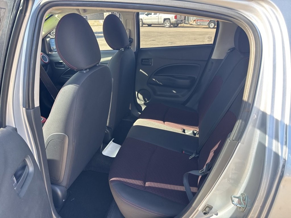 This 2020 Mitsubishi Mirage LE in comes with the following features: 1.2L 3-Cylinder DOHC MIVEC CVT FWD 4 Speakers, ABS brakes, Air Conditioning, Alloy wheels, AM/FM radio, Android Auto & Apple CarPlay, Automatic temperature control, Brake assist, Bumpers: body-color, CD player, Cloth Sport Fabric Seat Trim, Driver door bin, Driver vanity mirror, Dual front impact airbags, Dual front side impact airbags, Electronic Stability Control, Exterior Parking Camera Rear, Front anti-roll bar, Front Bucket Seats, Front reading lights, Front wheel independent suspension, Heated Front Bucket Seats, Heated front seats, Illuminated entry, Knee airbag, Leather Shift Knob, Low tire pressure warning, Occupant sensing airbag, Overhead airbag, Panic alarm, Passenger door bin, Power door mirrors, Power steering, Power windows, Radio: 6.5 Smartphone Link Display Audio, Rear window defroster, Rear window wiper, Remote keyless entry, Speed control, Split folding rear seat, Spoiler, Steering wheel mounted audio controls, Tachometer, Tilt steering wheel, Traction control, Trip computer, and Variably intermittent wipers.